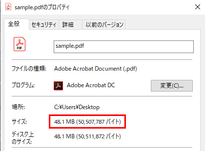 今回例に使うPDFは容量 48.1MB