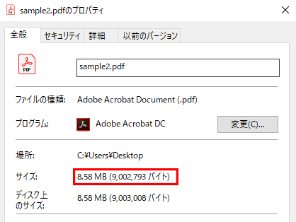 自分は『Acrobat 9.0およびそれ以降』でやってみましたが、結果は 8.58MB